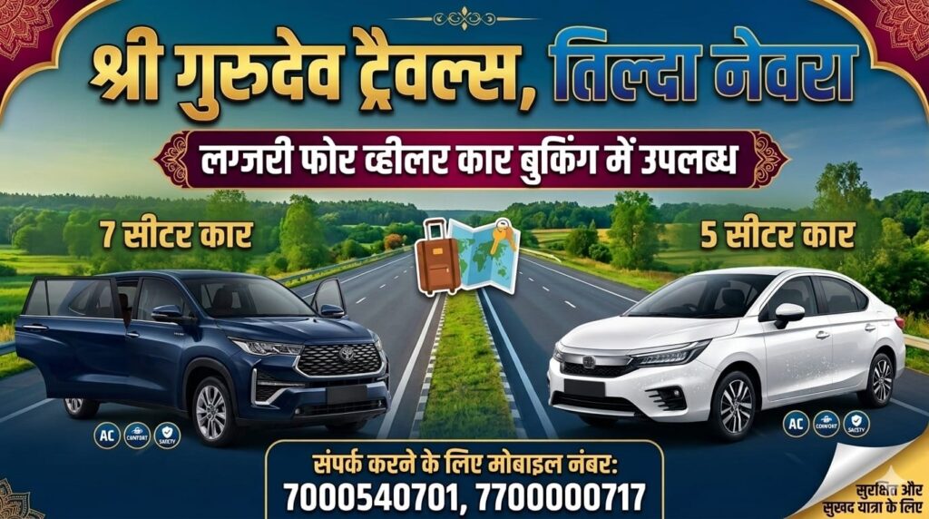 तिल्दा-नेवरा में अब लग्जरी कार किराए पर उपलब्ध, गुरुदेव ट्रैवल्स दे रहा किफायती और भरोसेमंद सेवा