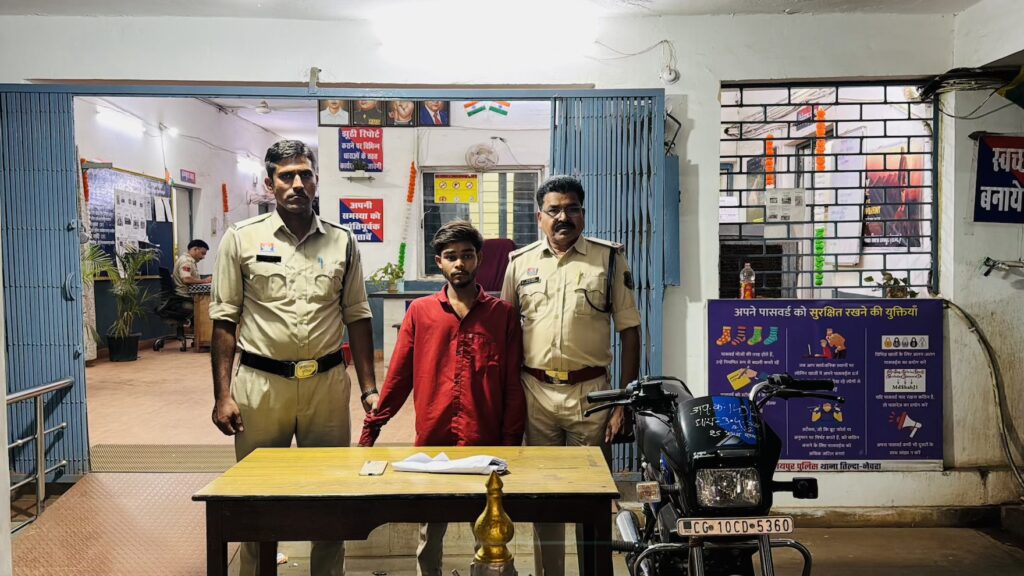 तिल्दा नेवरा पुलिस ने मोबाइल स्नैचिंग की वारदात में त्वरित कार्रवाई करते हुए एक आरोपी को गिरफ्तार कर उसके कब्जे से छीना गया मोबाइल, घटना में प्रयुक्त मोटरसाइकिल और एक बड़ा धारदार चाकू बरामद किया है। पुलिस की सतर्कता और तत्काल नाकेबंदी के चलते आरोपी को कुछ ही समय में दबोच लिया गया।