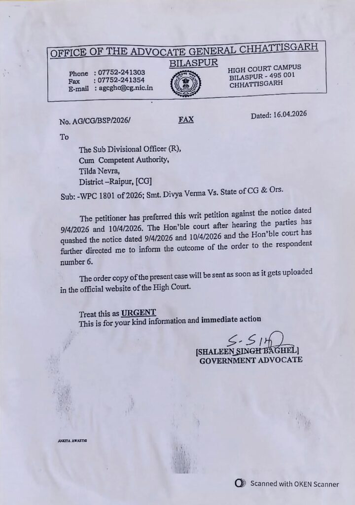तिल्दा ब्लॉक के ग्राम पंचायत देवरी में सरपंच दिव्या वर्मा के खिलाफ पंचों द्वारा लाए गए अविश्वास प्रस्ताव पर गुरुवार को होने वाला मतदान ऐन वक्त पर रुक गया। मतदान की पूरी प्रशासनिक तैयारी ग्राम पंचायत में कर ली गई थी, लेकिन इसी बीच छत्तीसगढ़ हाईकोर्ट का आदेश आने से पूरी प्रक्रिया को तत्काल प्रभाव से निरस्त कर दिया गया।