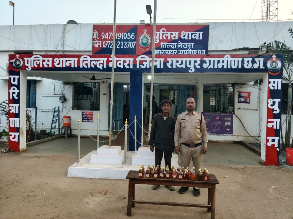 थाना तिल्दा नेवरा पुलिस द्वारा अवैध शराब परिवहन एवं विक्रय के विरुद्ध चलाए जा रहे विशेष अभियान “ऑपरेशन निश्चय” के तहत एक और कार्रवाई करते हुए 30 पौवा देशी मसाला शराब के साथ एक आरोपी को गिरफ्तार किया गया है।